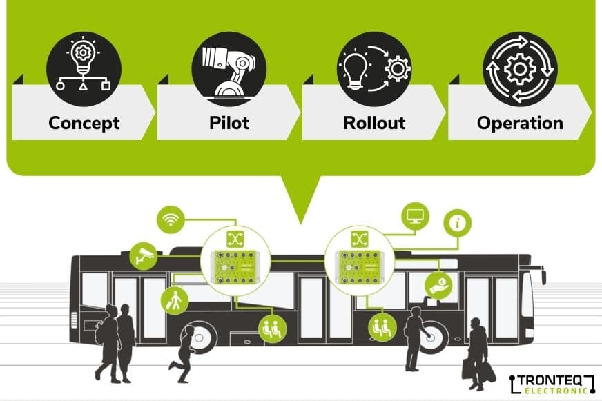 Most devices on board a digitalized public transport vehicle use IP-based communication. In the following, we look at typical project phases for implementing an IP network in the vehicle.